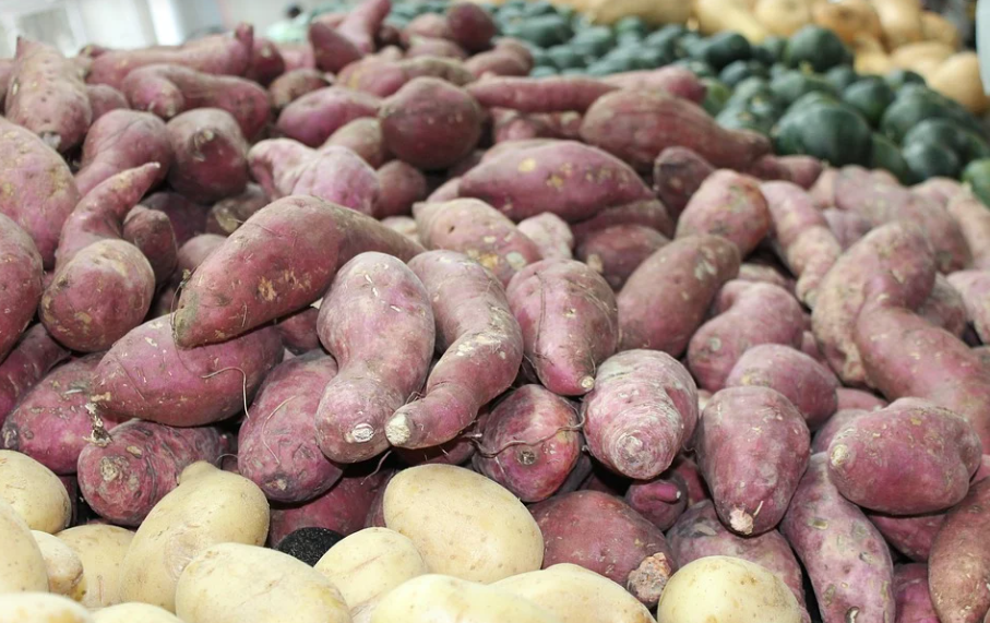 과거에 서민들이 많이 먹던 구황작물이 고구마는 수용성 식이섬유가 함유되어 있고 칼륨도 많이 함유되어 있는