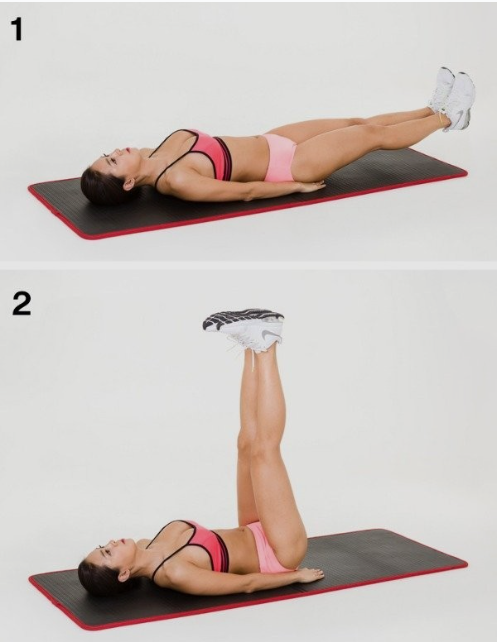1) 등을 대고 누워서 양다리를 바닥에서 곧게 높이 올리는 운동입니다.